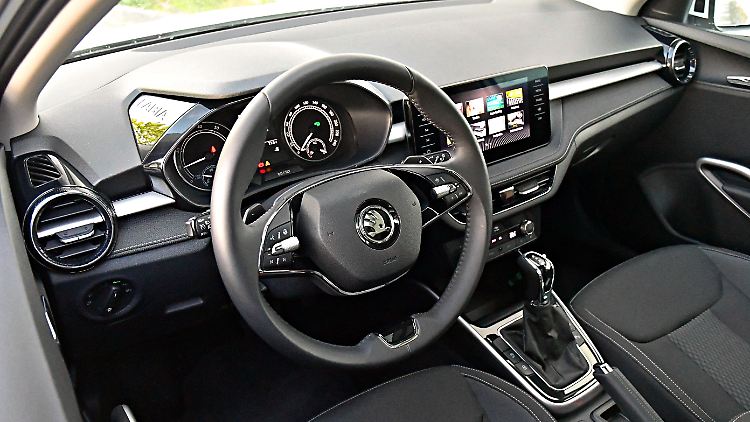 Und so glänzt der Fabia mit fein rastenden analogen Drück- und Drehstellern, zeigt mit seinem 9,2 Zoll großen Touchscreen oberhalb der Mittelkonsole Zeitgeist. Und bietet hier ganz intuitiv die detailreiche Steuerung der Klimaanlage ebenso an wie die Steuerung des Radios, des Navigationssystems oder der Apps des gespiegelten Smartphones. Alles sehr fein, alles sehr gut verarbeitet. Lediglich bei den Bezügen der Polster kamen Zweifel auf, ob die wohl für die Ewigkeit gemacht sind. Die Sportsitze schienen es schon, denn sie waren straff gepolstert und vermittelten ein Gefühl der absoluten Langstreckentauglichkeit.