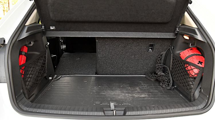 Und wie ist es mit den Ablagen? Die gibt es auch. Sie sind zwar nicht so üppig, wie man sie aus einem Octavia kennt, aber mit etwas Geschick finden die kleinen Dinge des Lebens ihren Platz. Lediglich für Brillenträger könnte es schwierig werden. Das Fach in der Mittelarmlehne, die sich leider nicht verschieben lässt, ist mit einem Etui voll und ein zweites Augenglas muss entweder in den engen Türinnenverkleidungen oder im Handschuhfach verschwinden. Ein Brillenfach im Dachhimmel gibt es nicht, weil der Testwagen an dieser Stelle ein die gesamte Fläche überspannendes Panoramadach hatte. Und der Kofferraum? Ist mit 380 Litern so groß wie der des Golf 8. Wer die Rückbank flach macht, hat sogar 1190 Liter Stauraum auf einer planen Fläche zur Verfügung. Mit diesen Maßen im Hinterkopf könnte sich der 50-Liter-Tank dann doch wieder lohnen.