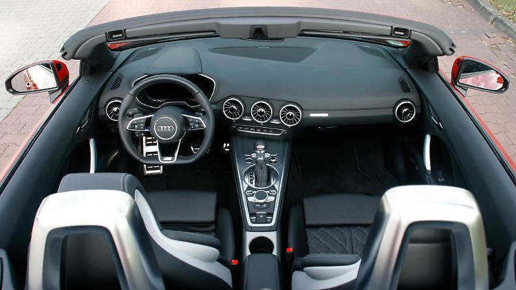 Am TT-Interieur ist nur das neue "virtuelle Cockpit" erwähnenswert, denn ringsum herrschen markenbekannte Bedingungen: Saubere Verarbeitung, edle Materialien, hochwertiges Ambiente, geschmackvolles Design, dem es an Praxisorientierung nicht fehlt. Bis auf die kümmerliche Verdecktaste ist alles schick und schnieke. Die Sportsitze sind sehr seitenstabil, die fünf an Flugzeugturbinen erinnernden Gebläse-Auslässe sind durch ihre integrierte Klimabedienung ein Musterbeispiel der gelungenen Vermählung von Form und Funktion. Um die harmonische Symmetrie der Mittelkonsole nicht zu beschädigen, ist die Bedienung der elektrischen Außenspiegel im Futter der Fahrertür untergebracht.