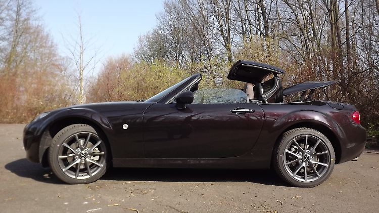 Der Fahrspaß wird auf die Spitze getrieben, wenn der Roadster sich in nur 30 Sekunden in ein Cabriolet verwandelt. Nach der Entriegelung des Hardtops genügt ein Knopfdruck, um sich ganz der Außenwelt zu öffnen. Das kann sogar bei niedrigen Temperaturen gewagt werden, denn eine fünfstufige Sitzheizung und eine Klimatisierungsautomatik sorgen für angenehme Temperaturen und ein aufklappbares Windschott für die Umlenkung der Luftverwirbelungen vom Heck. Tempofahrten sollten sich bei offenem Verdeck die ganz Harten vorbehalten. Mazda gibt die Höchstgeschwindigkeit des 1,8-Liter-Triebwerkes mit 198 km/h an. Der Testwagen sagte aber auch bei Tempo 200 noch nicht Nein.