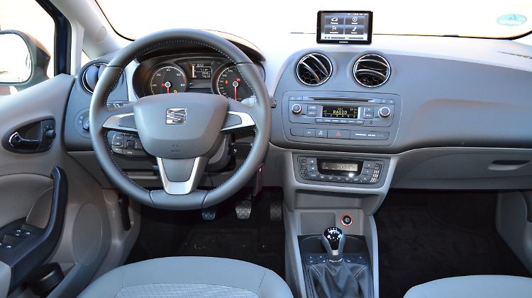 Die sind im Übrigen auch kein Problem, wenn man sich auf dem einfachen, aber durchaus straffen und tatsächlich nicht unbequemen Sitzen im Ibiza niederlässt. Die Oberschenkelauflage ist gut, der Rückenhalt angenehm, nur der Drehknopf, um sie zu verstellen, ist etwas ungünstig zwischen Seitenwangen und B-Säule eingeklemmt. Außerdem wäre es schöner, wenn sich die Kopfstütze im Neigungswinkel verstellen ließe. Die Orientierung für den Fahrer ist wie in allen Modellen der VW-Familie auch im Seat Ibiza ein leichtes. Klar strukturierte Rundinstrumente im Blickfeld des Piloten, deren Ziffernfeld für die Optik einen feinen Chromrahmen bekommen hat.