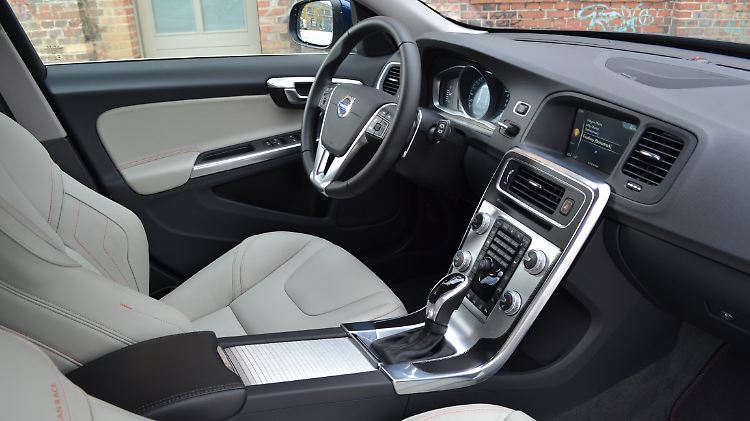 Ansonsten gilt im Volvo Wohlfühlatmosphäre. Die Armatur aus weich geschäumter Plastik schwingt sich weit von Tür zu Tür. Schade nur, dass die Schweden die Mittelarmlehne so weit nach hinten platziert haben, dass man den Ellbogen extrem weit zurücksetzen muss, um ihn aufzulegen. Vermisst wurden beim Test auch Abstellflächen für Flaschen in den Türinnenseiten. Die zwei Becherhalter über dem Mitteltunnel taugen jedenfalls nicht dafür. Erfreulich sind hingegen wieder die dezenten Akzente, die mit Aluminiumspangen gesetzt werden. Auch die in der "schwebenden" Mittelkonsole für heutige Verhältnisse etwas üppige Knopfflut erfreut durch feine Druckpunkte und eine – hat man sie erstmal durchschaut – angenehme Logik. In der Serie thront über all dem ein 5-Zoll-Farbmonitor. Das ist gemessen an der Premiumkonkurrenz entschieden zu klein. Deshalb habend die Schweden im Business-Paket-Pro für 1950 Euro nicht nur eine Einparkhilfe vorn und hinten verbaut, sondern auch einen Park Assistenten, der den V60 parallel zur Fahrbahn vollautomatisch in die Lücke schiebt. Dazu gibt es noch ein Infotainmentsystem Sensus Connect mit "High Performance Sound" von Harman Kardon und einen 7-Zoll-Farbmonitor.