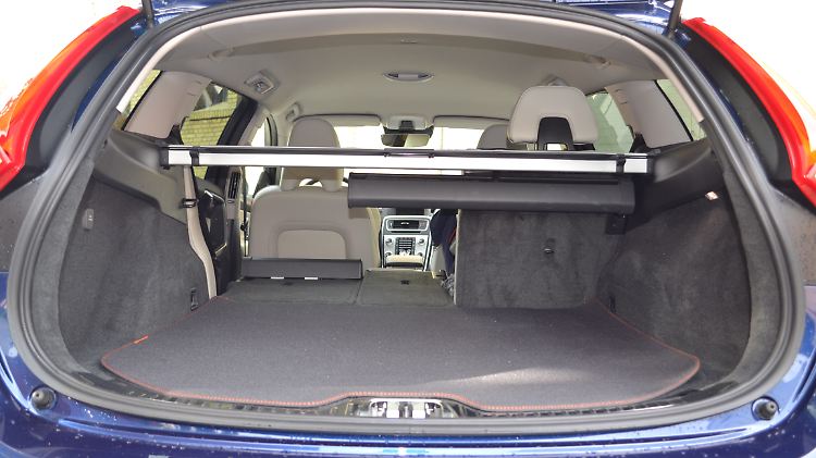 Da der Volvo aber nicht nur ein Hingucker ist, sondern auch noch ein Kombi, wenn auch einer mit nicht so üppigem Ladevolumen (lediglich 430 Liter schluckt der sehr flach gebaute Kofferraum), empfehlen sich noch ein paar andere Beigaben, die das Leben der Familie im V60 angenehmer machen. Da wäre zum Beispiel das Familienpaket, hinter dem sich eine Kindersicherung für die hinteren Türen und zwei in den äußeren Fondsitzen integrierte Kindersitze verbergen. Die ersparen gestressten Eltern den ständigen Transport von entsprechenden externen Sitzhilfen. Das Ganze kostet schmale 350 Euro. Auch das Laderaumpaket für 225 Euro lohnt sich. Mit diesem System, das vom Gepäckraumboden hochgeklappt wird, werden zum Beispiel Einkaufstaschen mit Haken und einem elastischen Band sicher befestigt. Bei Nichtgebrauch verschwindet es ganz einfach wieder im Boden. Auch ein Gepäckraum-Trennnetz ist in dem Preis enthalten.