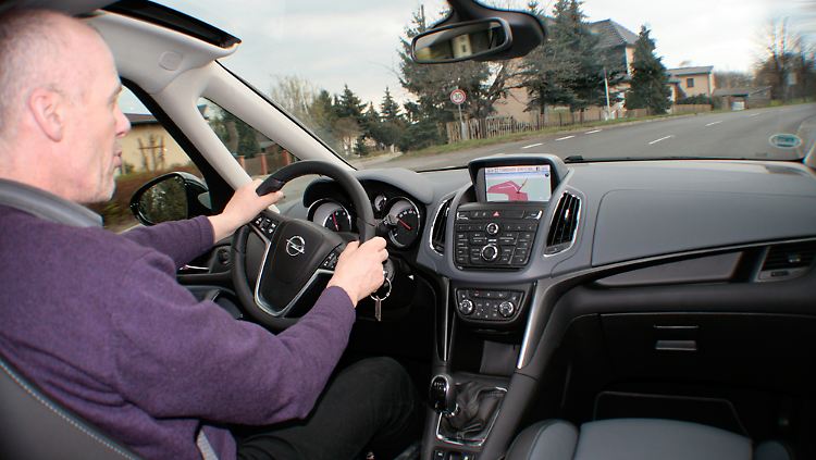 Neben einer soliden Basisausstattung lässt sich der Zafira Tourer je nach Ausstattungspaket auch in punkto Sicherheit in Richtung Oberklasse aufrüsten. Frontkamera, Frontradar und Ultraschall-Sensoren liefern eine Vielzahl von Daten, die aktiv zur Unterstützung des Fahrers genutzt werden. Die adaptive Geschwindigkeitsregelung ist nur in Verbindung mit dem Automatik-Getriebe wirklich ein Gewinn, denn das automatische Abbremsen hinter langsameren Fahrzeugen macht häufiges Schalten nötig, was wiederum den Tempomat außer Kraft setzt. Die Schwäche des Druck-Drehrings am Navigationsgerät ist inzwischen auch bei Opel bekannt, schwerer wog bei dieser Testfahrt jedoch, dass das zum Einsatz kommende Kartenwerk nicht dem sonstigen Standard des Autos entsprach: Das Fehlen von (befestigten) Nebenstraßen in bestimmten Maßstäben und wichtigen POIs schmälern den positiven Gesamteindruck.