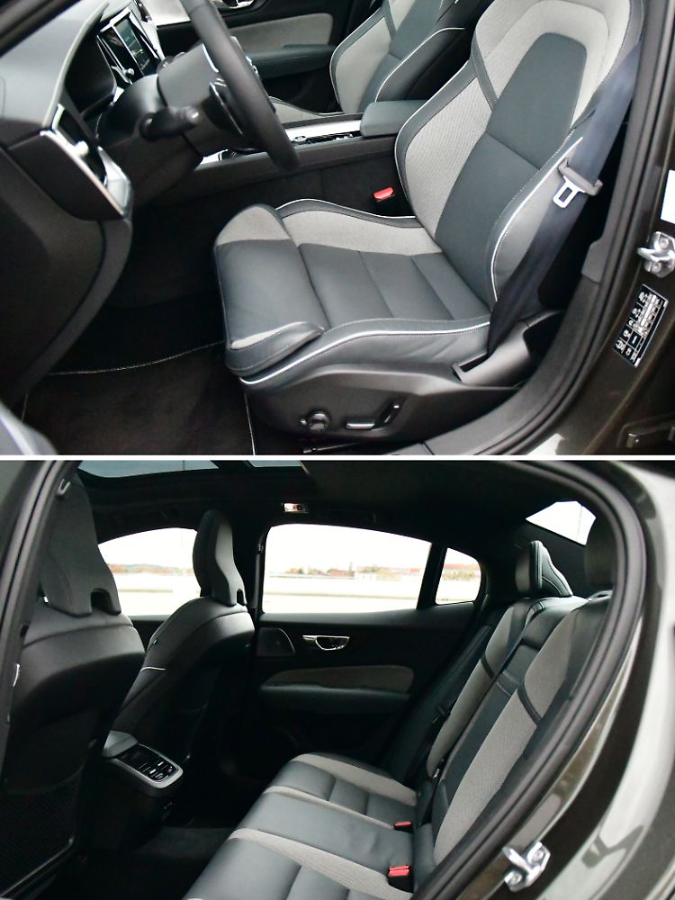 Die Sitze sind seit jeher eine Macht von Volvo und so machen sie auch im S60 keine Ausnahme. Straff gepolstert, mit elektrisch verlängerbarer Oberschenkelauflage und gut ausgeformten Seitenwangen taugen die nicht nur für das Kurven-Surfen, sondern auch für die Langstrecke. Das gilt übrigens auch für die zweite Reihe. Zwar ist die Sitzfläche hier recht steil angestellt, vermittelt aber dem Fond-Passagier nicht das Gefühl, im Zahnarztstuhl zu sitzen. Dafür verhindert diese Position, dass größer gewachsene Menschen sich den Kopf am Dachhimmel oder die Knie an der Lehne des Vordermanns schubbern müssen. Im Fond hat sich Volvo ebenfalls bemüht, den Polstern langstreckentaugliche Konturen zu geben, so dass sich auch in der zweiten Reihe über die Zeit niemand beschweren muss.