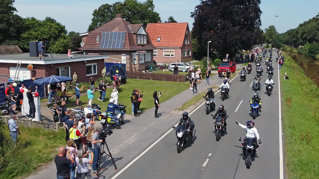 Um einem Jungen in Ostfriesland, der unheilbar an Krebs erkrankt ist, noch einmal eine Freude zu machen, sind über 15.000 Biker am Haus der Familie vorbeigefahren. Denn der sechsjährige Kilian liebt Motorräder und hat sich gewünscht, dass diese noch einmal richtig Krach für ihn machen. Der Vater des Kindes sagte, er sei überwältigt von der Aktion. Das sechs Jahre alte Kind zeigte sich mehrfach am Fenster und beobachtete die Kolonne.