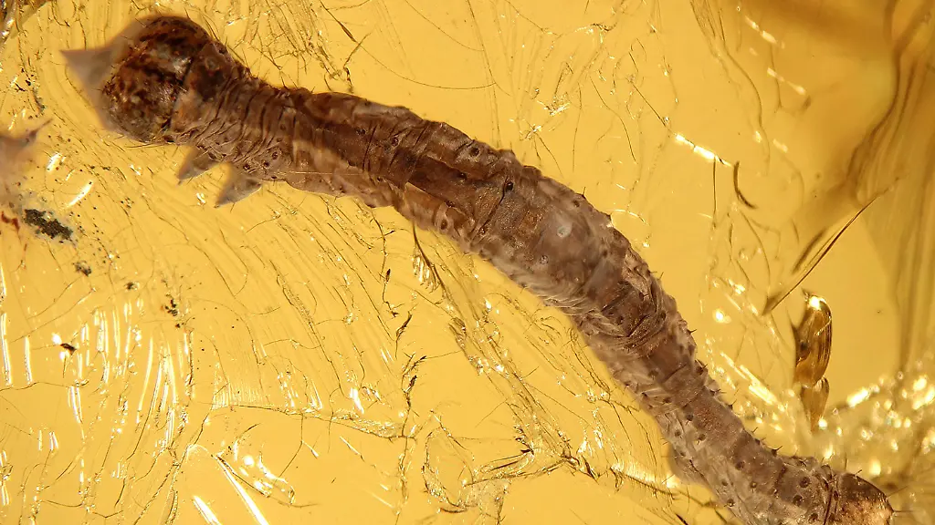 Der Tag44 Millionen Jahre alte Raupe in Bernstein entdeckt