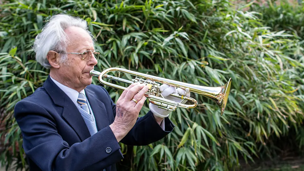 Der 82-jährige Alfred Schroeter musiziert derzeit jeden Tag im Garten des St.-Josef-Krankenhauses in Moers mit seiner Trompete für seine schwerkranke Frau. "Auch die anderen Patienten freuen sich über die musikalische Einlage", sagte eine Kliniksprecherin. Am Osterwochenende habe sogar ein kleines Bläser-Ensemble der evangelischen Kirche im Garten aufgespielt.