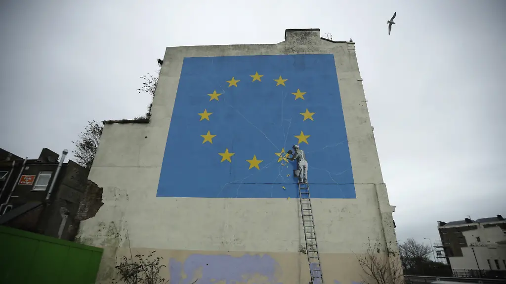 Ein meterhohes Wandgemälde des mysteriösen britischen Graffiti-Künstlers Banksy zum Brexit in der südenglischen Hafenstadt Dover ist nicht mehr zu sehen. An der Hauswand in der Nähe des Fährterminals war ein Gerüst aufgebaut, wie Fotos zeigen. Es sieht so aus, als sei die Wand weiß übertüncht worden. Das Bild von Banksy war im Frühjahr 2017 aufgetaucht. Es zeigte die EU-Flagge mit gelben Sternen und einen Arbeiter auf einer Leiter, der dabei war, einen der Sterne mit Hammer und Meißel zu entfernen. Der Künstler, der selbst nie in der Öffentlichkeit auftaucht, hatte auf Instagram bestätigt, dass es sein Werk sei. Das Bild wurde daraufhin auf einen Wert von einer Million Pfund (1,1 Millionen Euro) geschätzt.