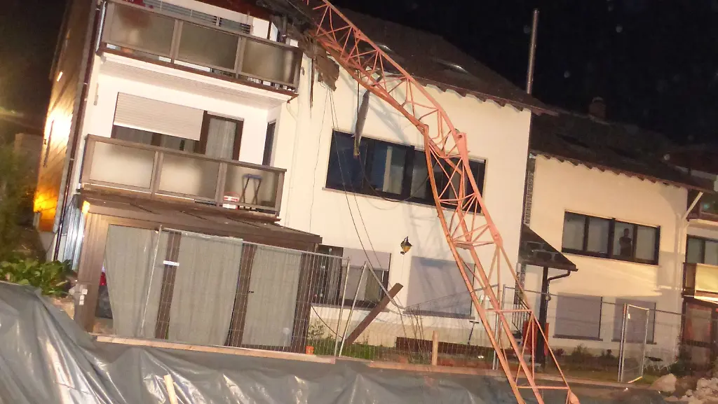 Der obere Teil des Krans knickte ab und schlug auf dem Dach des Hauses auf. Verletzt wurde niemand, die obere Wohnung in dem Haus war allerdings nicht mehr bewohnbar. Den Schaden schätzte die Polizei auf 40.000 Euro.