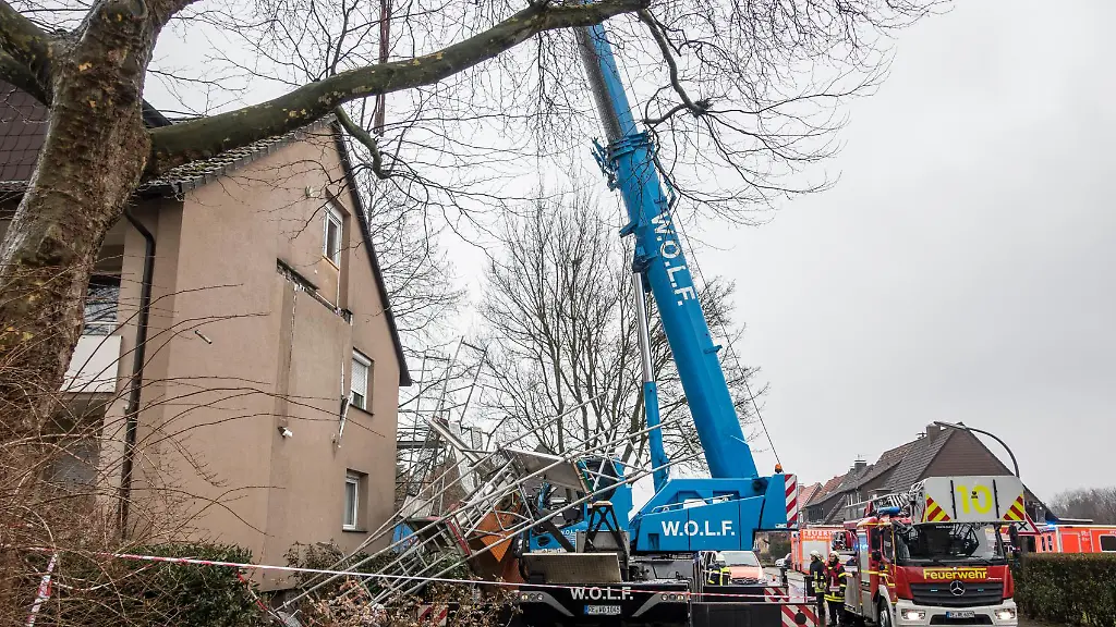 Ein Bauunternehmer ist in Recklinghausen beim Abriss eines Balkons in die Tiefe gestürzt. Der 77-Jährige verletzte sich lebensgefährlich. Der Mann hatte auf einem Baugerüst am Balkon gestanden, als sich die Bodenplatte des Balkons im zweiten Obergeschoss eines Mehrfamilienhauses löste und das Gerüst mit sich riss. Zwei weitere Arbeiter hatten Glück: Sie fanden Halt auf einem schmalen Sims und konnten sich am Fensterrahmen festhalten, bis die Feuerwehr kam. Sie blieben ebenso unverletzt wie ein Kranführer, auf dessen Führerhaus das Gerüst gefallen war. Der 77-Jährige kam mit einem Rettungshubschrauber in ein Krankenhaus.