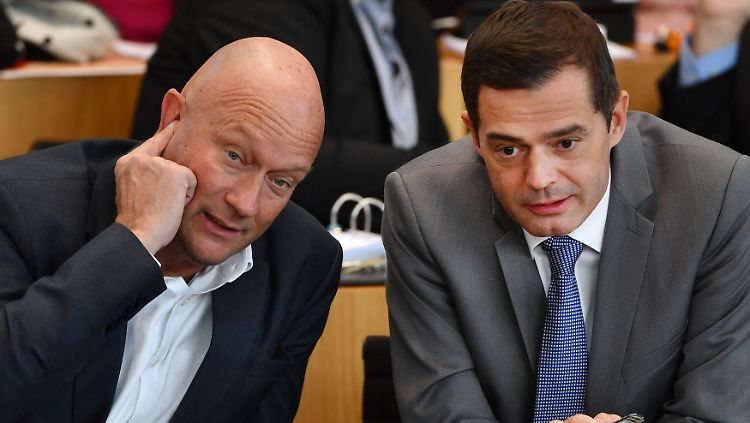 Zu der Thüringer CDU gehört auch der Fraktionsvorsitzende Mike Mohring. Links daneben: Thomas Kemmerich von der FDP.