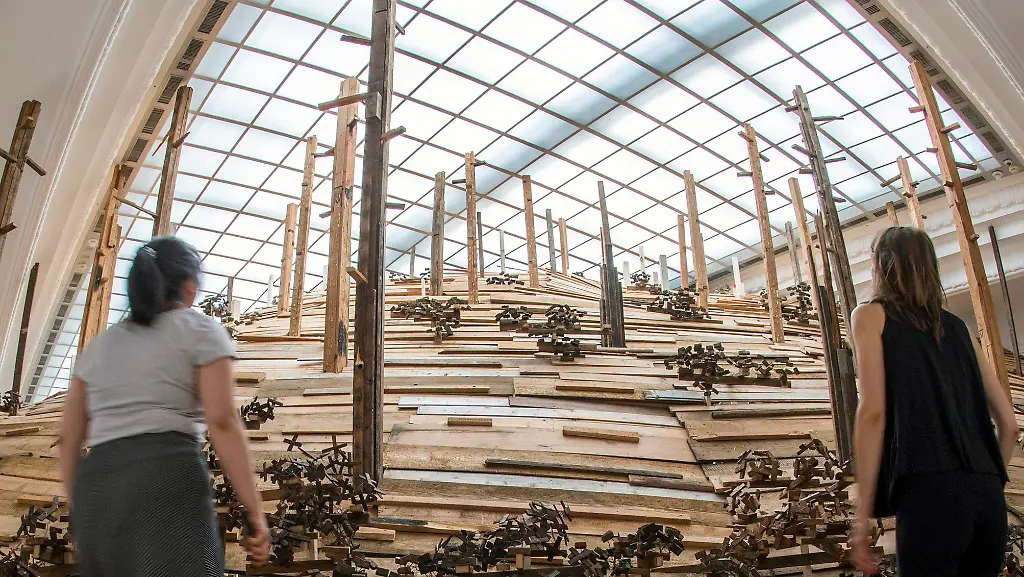 Ein Bergaufstieg mal anders. In Baden-Baden können Besucher die riesige Berg-Konstruktion "Distant tantamount Mountain" bewundern und auch begehen - dabei ist der Berg aus Holz. Die zusammenhängende Plastik des chinesischen Künstlers Liang Shuo zieht sich raumhoch durch alle Zimmer des Museums.