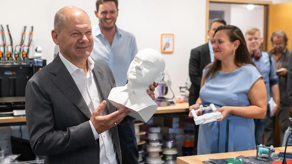 Der Tag"Da müssen andere lange für arbeiten": Scholz bekommt Büste aus 3D-Drucker