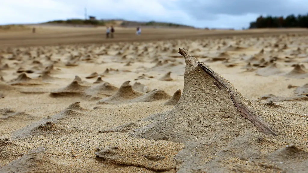 der Taifun "Nanmadol" ist am Sonntag heftig über den Südwesten Japans weggefegt. Mehrere Menschen sind dabei ums Leben gekommen. Auf den Tottori-Dünen hat der Taifun viele kleine "Sandsäulen" hinterlassen - ein Bild, über das ich in den Agenturen gestolpert bin. Nach Angaben des Tottori Sand Dunes Visitor Center erzeugt heftiger Wind nach einem Regenfall diese Formen im Sand - heute im Bild festgehalten in den Dünen.