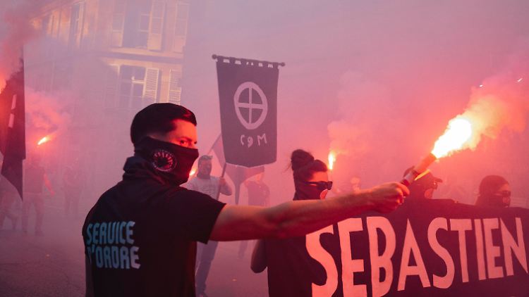 Mit dem Aufmarsch gedenken Neonazis dem 1994 gestorbenen rechtsextremen Aktivisten Sébastien Deyzieu.