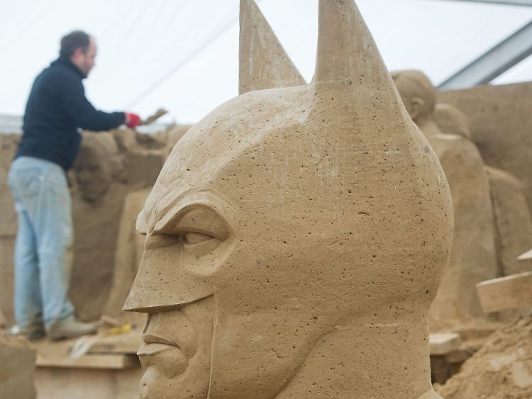 Jack Sparrow? Ja genau, das ist der Herr aus "Fluch der Karibik" - und jetzt als Sandskulptur auf Rügen verewigt, wo die 6. Sandskulpturenschau eröffnet wurde. Und Batman ist auch da.