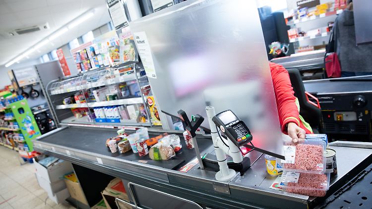 Die Kassierer und Kassiererinnen haben besonders viel Kundenkontakt, damit steigt auch das Ansteckungsrisiko. In diesem Hamburger Supermarkt soll eine Plexiglasscheibe Schutz bieten.