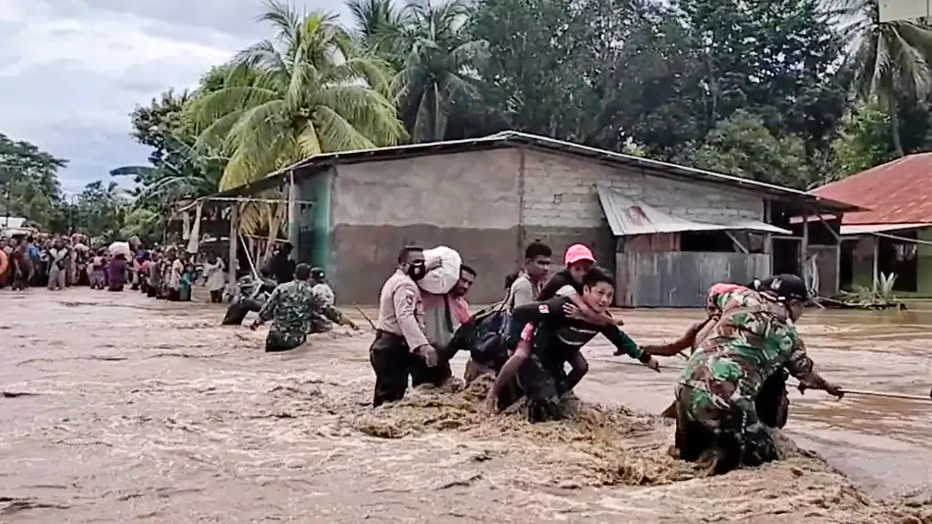 Auf der indonesischen Insel Flores versanken kleine Ortschaften regelrecht im Schlamm, Bäume wurden entwurzelt und Häuser stehen unter Wasser.