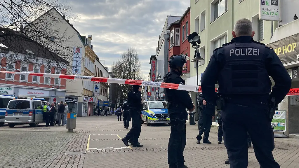 Die Geschäfte in der Nachbarschaft der Sparkassen-Filiale waren am Nachmittag menschenleer, die Fußgängerzone von Wattenscheid war teilweise abgesperrt. Polizisten mit Helm und voller Montur sicherten den Bereich ab, wie eine dpa-Reporterin berichtete. Einige Schaulustige standen am Absperrband. Am nahegelegenen August-Bebel-Platz lief der Verkehr hingegen normal. In den sozialen Netzwerken rief die Polizei dazu auf, den Bereich zu meiden. Der Bochumer Stadtbezirk Wattenscheid liegt im Westen der Bochumer Innenstadt und grenzt unmittelbar an Essen.