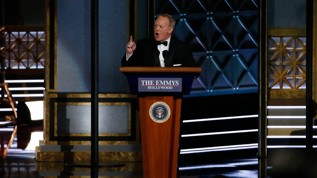 Ich hatte es ja eben schon erwähnt: Bei der Emmy-Verleihung hat ein Überraschungsauftritt vom Ex-Sprecher des Weißen Hauses, Sean Spicer, für Lacher gesorgt. Der 45-Jährige sollte die Laudatio für die Parodisten der TV-Show Saturday Night Live halten - auch er war regelmäßig Opfer der Comedians. Diesmal nahm er allerdings nicht nur sich selbst, sondern auch den Präsidenten auf die Schippe.