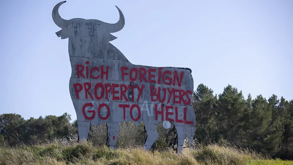 Eine Protestaktion gegen "reiche Ausländer" als mutmaßliche Preistreiber auf dem angespannten Wohnungsmarkt sorgt auf Mallorca für Aufsehen. Aktivisten besprühten auf der spanischen Urlaubsinsel die riesige Kultfigur eines Stieres mit der Aufschrift: "Rich Foreign Property Buyers - Go To Hell" ("Reiche ausländische Immobilienkäufer - fahrt zur Hölle").