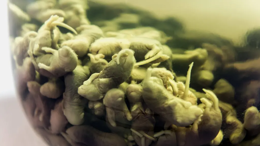 Besucher mit einem starken Magen können dort bis zum 3. November Gerichte wie chinesischen Bullenpenis oder Schafsauge im Tomatensaft bewundern - und sogar daran riechen. Auch Mäusewein - Reiswein, in den Mäuse eingelegt werden - kann bestaunt werden.