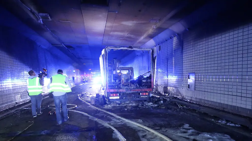 Die mit speziellen Löschfahrzeugen ausgestattete Tunnelfeuerwehr brachte das Feuer an dem rund einen Kilometer hinter dem Eingang brennenden Fahrzeug schnell unter Kontrolle.