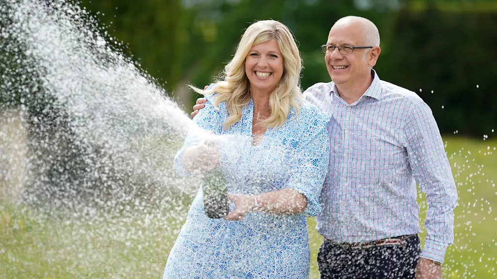 Ein Paar aus Großbritannien hat den größten Lotto-Jackpot des Landes geknackt und ist nun um knapp 220 Millionen Euro reicher. Joe und Jess Thwaite aus Gloucester in Westengland nannten den beispiellosen Gewinn von 184.262.899 Pfund "riesig für uns". Ihre Jackpot-Zahlen wählten die beiden zufällig aus, wie sie bei einer Pressekonferenz sagten. "Es war erstaunlich, aber auch surreal", beschrieb der 49-jährige Joe, der in einem Kommunikationsunternehmen arbeitet, den Moment, in dem er von dem Gewinn erfuhr. "Ich sah mir den Betrag online auf dem Smartphone an. Ich legte es erstmal wieder weg, dann nahm ich es wieder in die Hand und sah mir den Betrag noch einmal an."