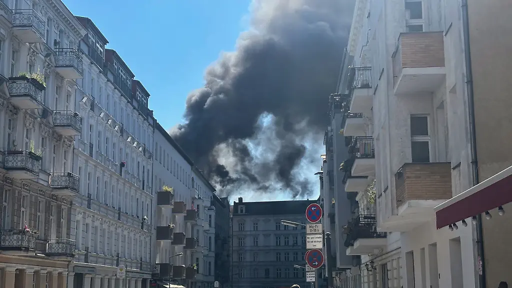 Dichte Rauchschwaden ziehen derzeit über Berlin-Schöneberg: Dort brennt der Dachstuhl eines fünfstöckigen Mehrfamilienhauses, wie der "Tagesspiegel" meldet. Die Feuerwehr sei derzeit mit 104 Kräften vor Ort, die Rede ist von einem "umfangreichen Dachstuhlbrand" an der Hauptstraße Ecke Kärntner Straße. Einige Bewohner hätten sich schon dem Eintreffen der Einsatzkräfte in Sicherheit gebracht. Unklar ist aber, wie viele Menschen sich noch in dem Gebäude befinden. Angeblich sollen sich auch Gasflaschen auf dem Dachboden befinden.
