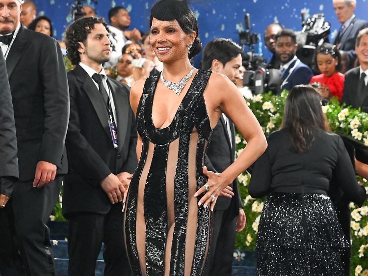 06.05.2025, 10:48 UhrHalle Berry hat bei der Met Gala in New York City ein sehr gewagtes Outfit präsentiert. Die Schauspielerin schritt in einem transparenten Kleid mit tiefem Ausschnitt über den blauen Teppich. Die von LaQuan Smith entworfene Robe im Meerjungfrauen-Stil war komplett durchsichtig, mit Ausnahme einiger besonders strategisch platzierter dunkler Längsstreifen, die das Nötigste verdeckten. Von Unterwäsche war bei dem Auftritt der 58-Jährigen nichts zu sehen.