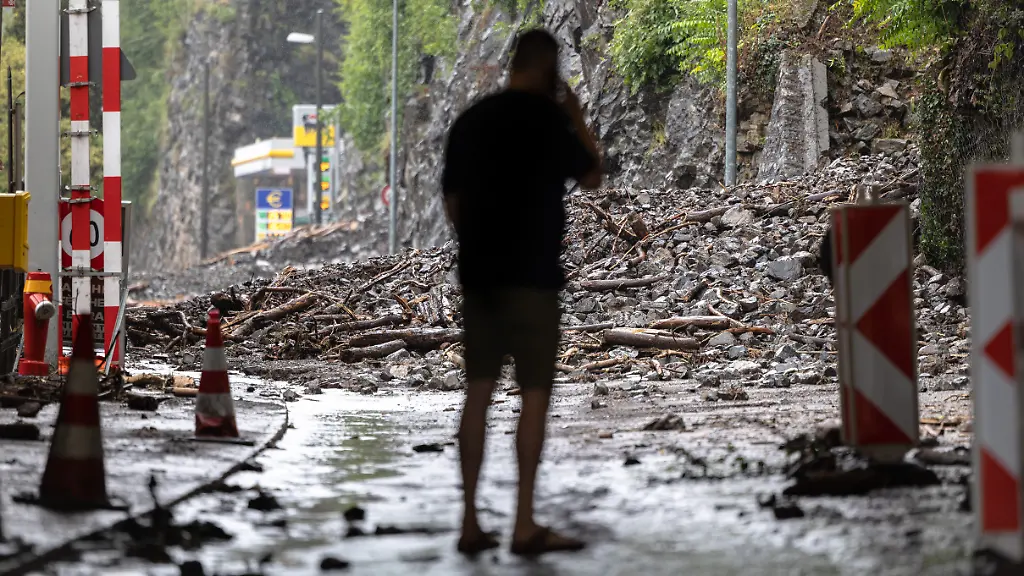 Auch am Gardasee sorgen Unwetter für Probleme. Schlammmassen schoben sich in Limone sul Garda in ein Hotel. Es seien aber nur Essensräume betroffen, die Gäste könnten auf ihren Zimmern bleiben, sagt eine Hotelmitarbeiterin.