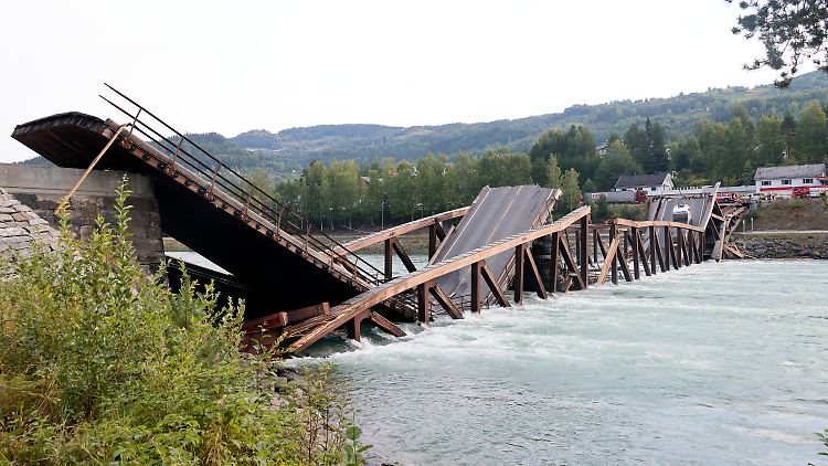15.08.2022, 11:20 UhrIm Süden Norwegens ist eine Flussbrücke eingestürzt und hat nach Angaben von Zeugen einen LKW und einen Pkw mitgerissen. Über mögliche Opfer sei zunächst nichts bekannt, erklärte die Polizei auf Twitter. Alle örtlichen Rettungskräfte seien zu der hölzernen Brücke der Ortschaft Tretten entsandt worden.