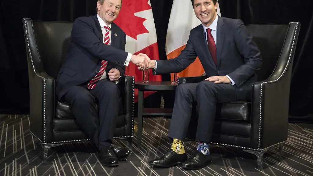 Da muss jemand ein riesiger "Star-Wars"-Fan sein: Kanadas Premierminister Justin Trudeau hat heute "Star-Wars"-Socken getragen. Und das auch noch bei einem Treffen mit dem irischen Premier Enda Kenny. Die Roboter "R2-D2" and "C-3PO" auf seinen Socken sprangen auch sonst jeden an, der ihm über den Weg lief. Warum das Ganze? Heute ist inoffizieller "Star-Wars"-Tag. Das Datum klingt auf Englisch so ähnlich wie das berühmte Filmzitat: "May the Force be with you".