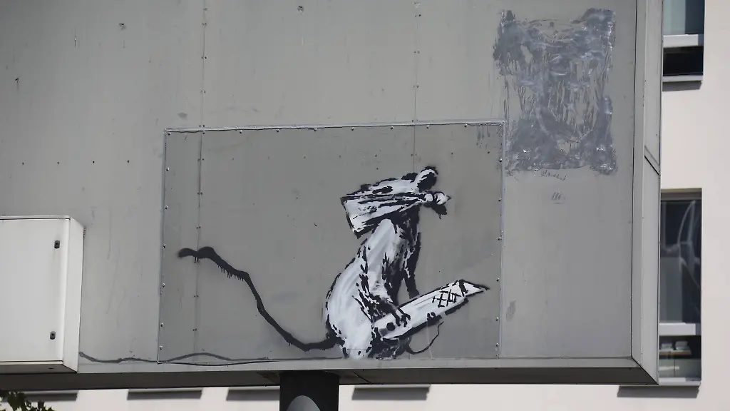 Bei dem Bild handelt es sich um eine mit einer Schablone aufgesprühte Ratte. Sie trägt ein Tuch um die Schnauze und hat ein Cutter-Messer in der Pfote - das Werkzeug, mit dem Banksy seine Schablonen schneidet. Zum Schutz des Kunstwerks wurde eine Plexiglas-Scheibe anmontiert. Die hat aber offenbar nicht viel gebracht.