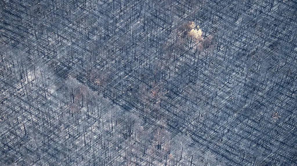 Der TagLuftbilder zeigen Zerstörung nach Waldbrand bei Berlin