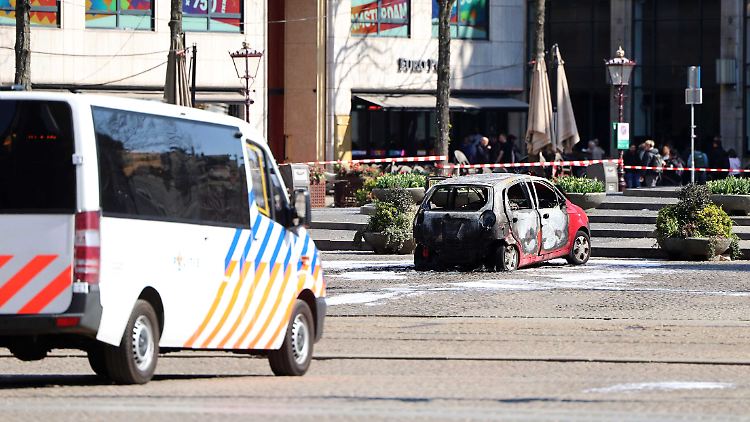 03.04.2025, 16:57 UhrAuf dem Platz Dam in der Nähe des Königspalastes im Zentrum von Amsterdam ist ein Auto ausgebrannt. Die Polizei vermutet, dass der Fahrer es absichtlich angezündet hat. Dieser sei leicht verletzt worden. Hilfsdienste und Polizei sind im Einsatz. Der Platz wurde abgesperrt.