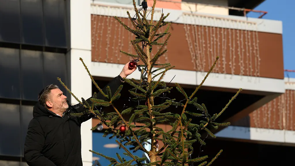 Oh Tannenbaum: Die Stadt Holzminden ruft die Menschen zum Spenden von Weihnachtsschmuck auf. Der etwas karge Baum soll damit aufgehübscht werden. Die Stadt spricht von einem "weihnachtlichen Akt der Nächstenliebe". Der parteilose Bürgermeister Christian Belke bringt mit einem Hubsteiger gespendeten Baumschmuck am sogenannten "Little Ugly Christmas Tree" am Haarmannplatz in Holzminden an.