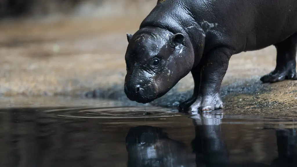 Der TagMini-Flusspferd Toni verzückt mit erstem Tauchgang