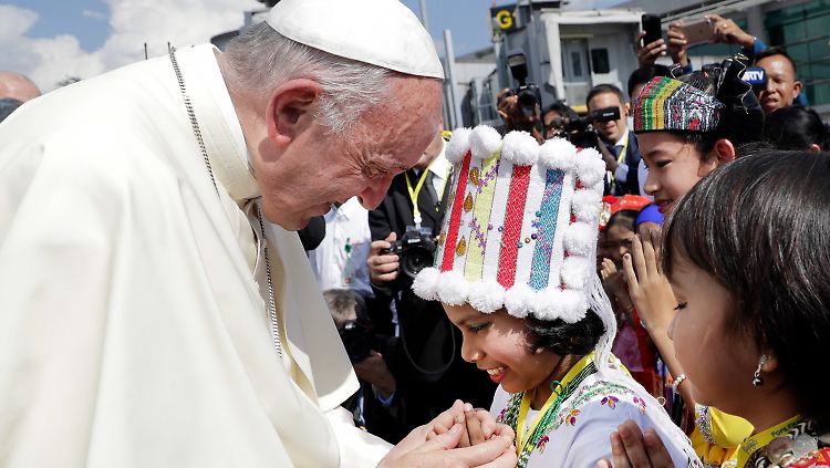 Es ist das erste Mal, dass ein Papst nach Myanmar reist, am Morgen ist Franzsikus in Rangun eingetroffen. Auf seiner Reise will er auch mit denen sprechen, die in den vergangenen Wochen häufig in den Schlagzeilen waren: den Rohingya, der muslimischen Minderheit im Land, die gewaltsam vertrieben wurde. Die wird er allerdings in Bangladesch treffen. Franziskus hat sich bereits mehrmals besorgt über die Verfolgung der Rohingya geäußert. Am Dienstag trifft er in Myanmars Hauptstadt Naypyidaw De-facto-Regierungschefin Aung San Suu Kyi, auch mit dem Armeechef Min Aung Hlaing wird er zusammenkommen.