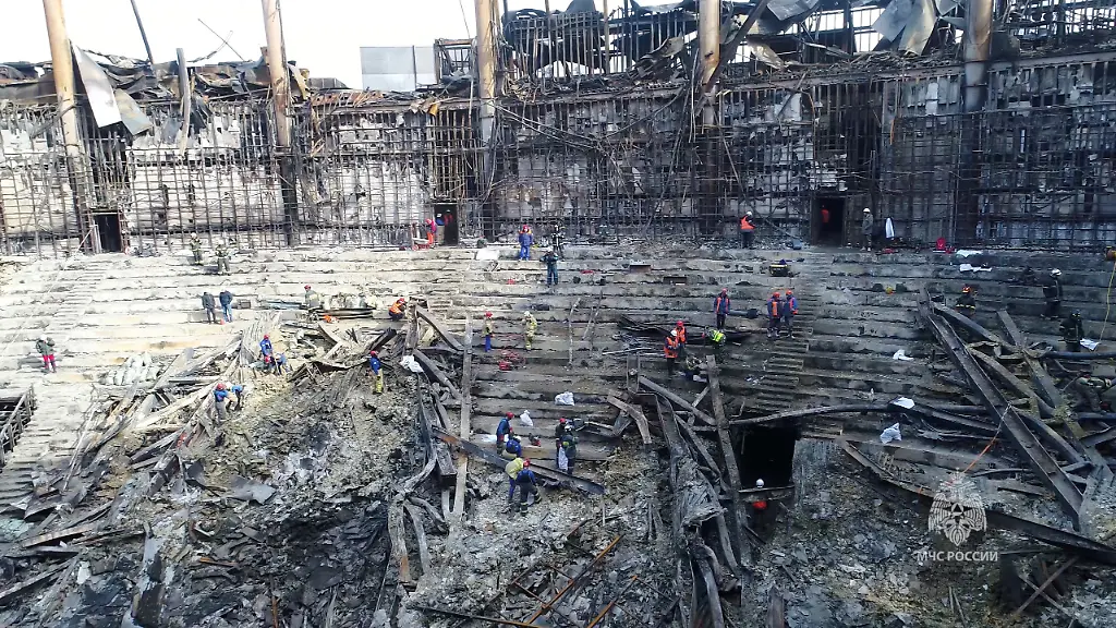 Es hätte sich wohl um ein Wunder gehandelt, wenn vier Tage nach dem Terroranschlag auf das Moskauer Theater noch Menschen lebend in den Trümmern gefunden worden wären. Die Rettungskräfte haben die Vermisstensuche in der ausgebrannten und teilweise eingestürzten Konzerthalle eingestellt. "Ich kann mitteilen, dass es unter den Trümmern keine Opfer mehr gibt", meldete der Chef des Katastrophenschutzes im Gebiet Moskau, Sergej Poletykin. "Die Suchhundeführer haben ihre Arbeit beendet, die Retter haben ihre Arbeit beendet." 8000 Quadratmeter Fläche seien abgesucht worden, teilte der Gouverneur des Moskauer Umlands, Andrej Worobjow, mit. Etwa 1000 Kräfte des Zivilschutzes seien im Einsatz gewesen, schrieb er auf seinem Telegramkanal.