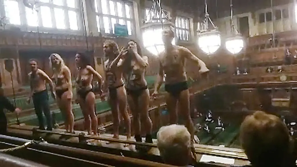 Der TagNackte Klima-Aktivisten sprengen Brexit-Debatte