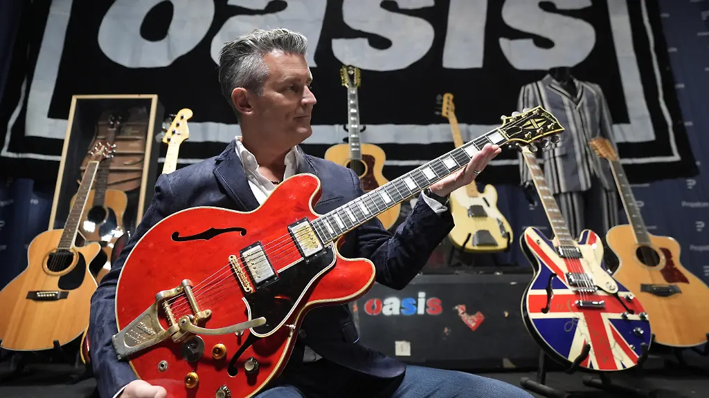 Wie der britische "Guardian" berichtet, wird die Trennungsnacht der Britpop-Band nun noch einmal zu Geld gemacht. Sänger Liam hat an jenem Abend auch eine "Lieblingsgitarre" von Songwriter Noel zerstört. Diese 1960er rote Gibson ES-355 steht nun zur Auktion (mittlerweile repariert) und soll etwa geschätzte 500.000 Pfund, also rund 572.000 Euro, einbringen. Die Versteigerung hat aber noch mehr bekannte Modelle: Die Gitarre, mit der der Klassiker "Wonderwall" aufgenommen wurde, steht genauso zum Verkauf wie eine Jacke von Michael Jackson oder eine Brille von John Lennon.