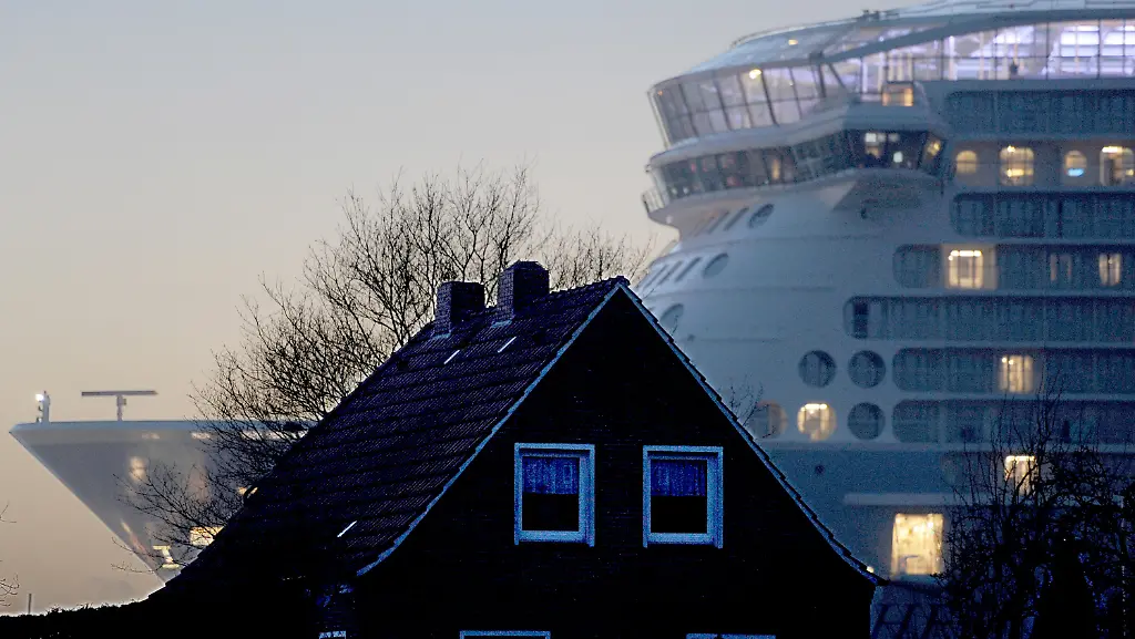 Eins der größten jemals in Deutschland gebauten Kreuzfahrtschiffe, die "Anthem of the Seas", hat das letzte Nadelöhr auf dem Weg zur Nordsee gemeistert.