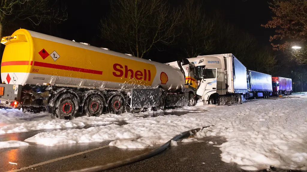 Nach dem Zusammenprall eines Tanklasters mit einem geparkten Lastwagen hatten sich am Mittwochabend rund 35.000 Liter Benzin über eine Straße ergossen. Der Tanker war nach Angaben der Polizei von der Fahrbahn abgekommen und frontal gegen einen parkenden Lastwagen geknallt. Dabei wurde der Tankauflieger beschädigt und das Benzin hatte die Fahrbahn überschwemmt. Größere Umweltschäden entstanden wohl keine.