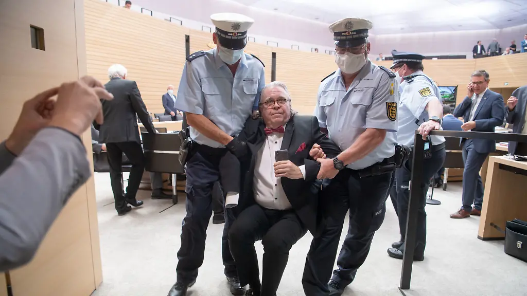 Der fraktionslose Abgeordnete Heinrich Fiechtner hat im baden-württembergischen Landtag mit Provokationen einen Polizeieinsatz ausgelöst - und das nicht zum ersten Mal. Nach mehreren Ordnungsrufen wurde der frühere AfD-Abgeordnete von Saaldienern aus dem Plenum getragen.