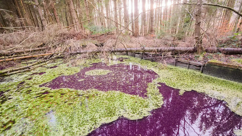 Ein kleiner Teich im Hildesheimer Wald sorgt für Aufsehen. Er hat sich purpurfarben verfärbt. Was hat es damit auf sich? Offenbar seien Bakterien der Grund für die Verfärbung, so der Niedersächsische Landesbetrieb für Wasserwirtschaft, Küsten- und Naturschutz (NLWKN). Gewässerverfärbungen könnten ganz unterschiedliche Gründe haben, sagte Hans-Heinrich Schuster vom Seen-Kompetenzzentrum des NLWKN in Sulingen (Landkreis Diepholz). "Solche typischen Verfärbungen haben häufig den Hintergrund, dass dort Mikroorganismen tätig sind - und das sind hier sehr wahrscheinlich Purpurbakterien". Diese Bakterien kämen häufig in Gewässern vor, die in einem ungünstigen Zustand sind.