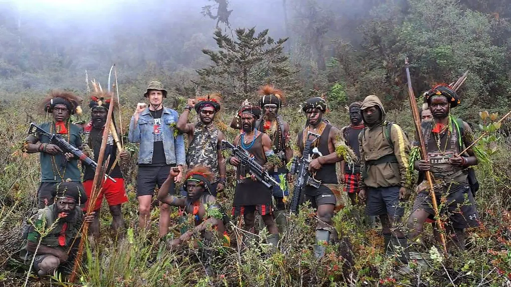 Vor rund einer Woche entführen Rebellen einen neuseeländischen Piloten in der indonesischen Provinz Papua - nun gibt es erstmals ein Foto der Geisel. Den Bildern zufolge ist der verschleppte Philip Mehrtens offenbar wohlauf. Er steht mitten im Dschungel, umringt von teils schwer bewaffneten Indigenen.