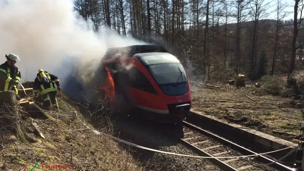 Der TagRegio-Zug geht während der Fahrt in Flammen auf
