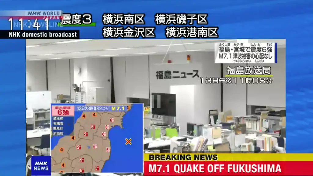 Ein schweres Erdbeben hat am späten Samstagabend (Ortszeit) die japanische Provinz Fukushima erschüttert. Das Beben hatte eine Stärke von 7,1, wie der Fernsehsender NHK berichtete. Über Schäden oder Verletzte gab es zunächst keine Informationen. Es gebe keine Gefahr durch einen Tsunami, gab die Wetterbehörde bekannt.